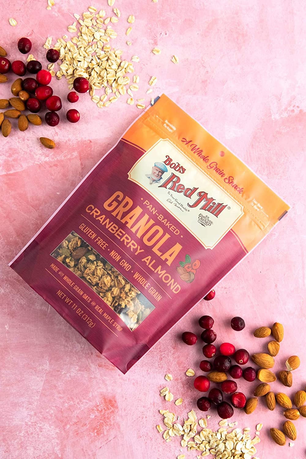 CRANBERRY ALMOND: Whole grain oats, real maple syrup, cranberries, almonds and coconut create granola that is rich in flavor (but not too sweet) SIMPLE, CLEAN INGREDIENTS: Non-GMO Project Verified, kosher and gluten free; 7 grams of sugar or less per serving ENJOY MULTIPLE WAYS: Eat these crunchy clusters by the handful as a quick and satisfying snack, as a cereal with milk, or layered with yogurt and fresh fruit FIND YOUR FLAVOR: Our Pan-Baked Granolas come in four incredible flavors, all free of gluten, dairy, soy and egg BOB’S RED MILL: Make folks a little happier: it’s the idea that keeps our stone mills grinding to fill every bag with wholesome goodness